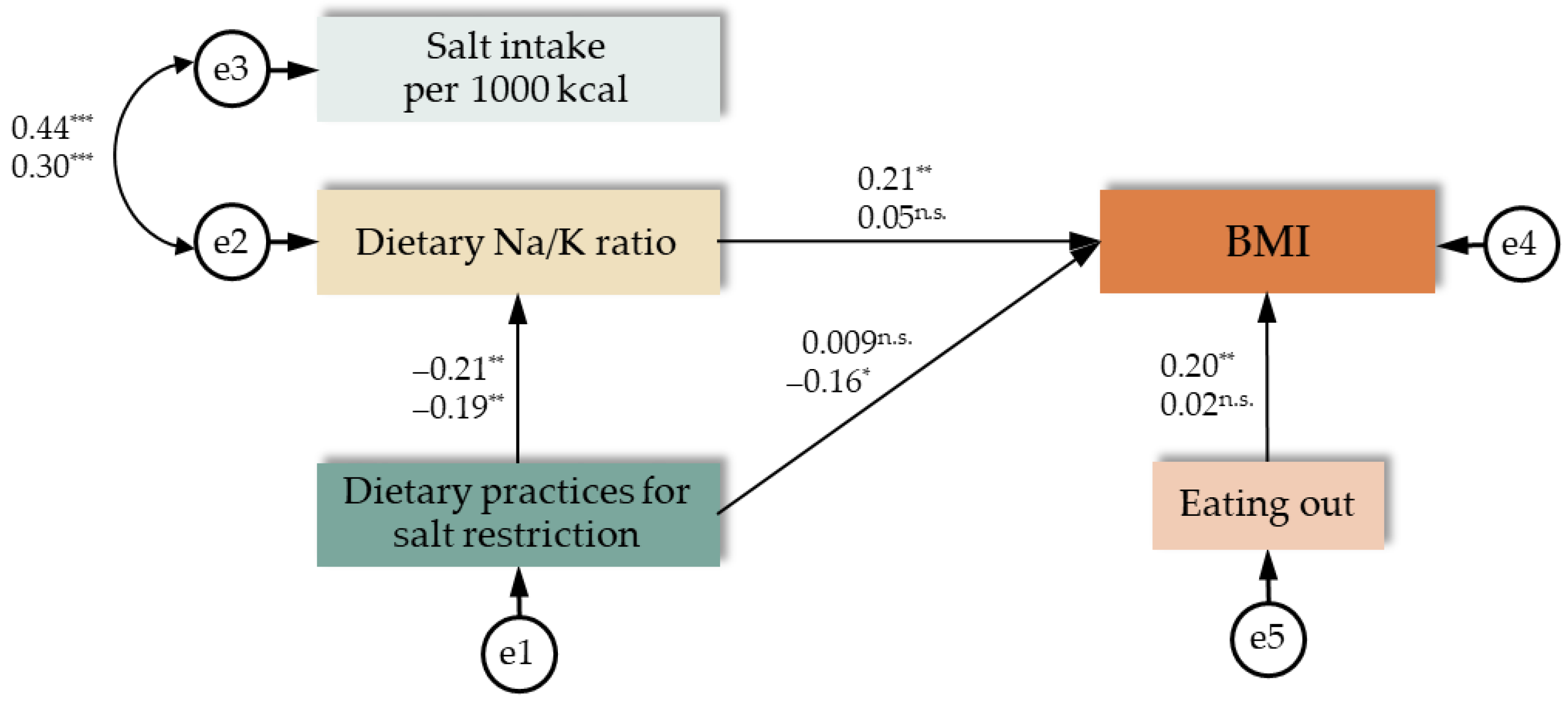 減塩習慣と食品Na/K比、BMIとの関連の仮説モデルを検証